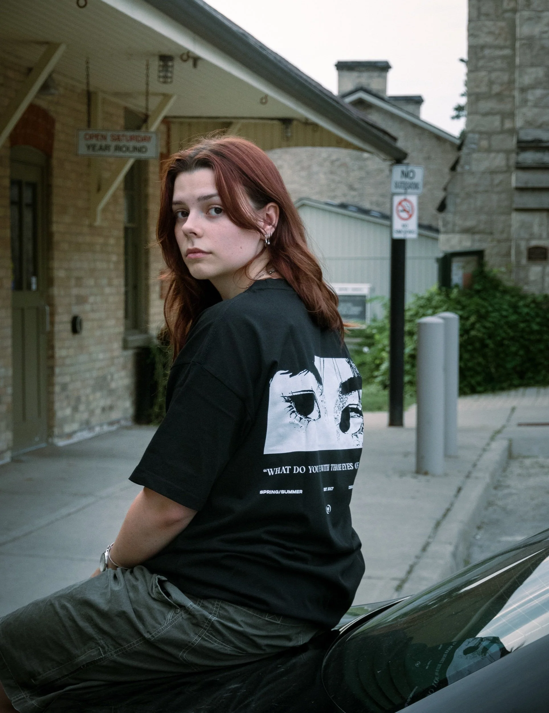 100% COTTON DROP SHOULDER TEE WITH PRINTED LOGO
